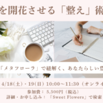 - 【新着セミナー】4/18(土)・19(日) オンライン開催タイトル:頑張り屋さんのための、才能を開花させる「整え」術メタフローラ・システムを使い、あなたのエネルギーの現… 続きを読む: 【新着セミナー】4/18(土)・19(日) オンライン開催